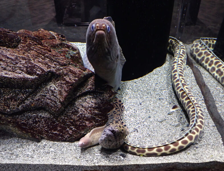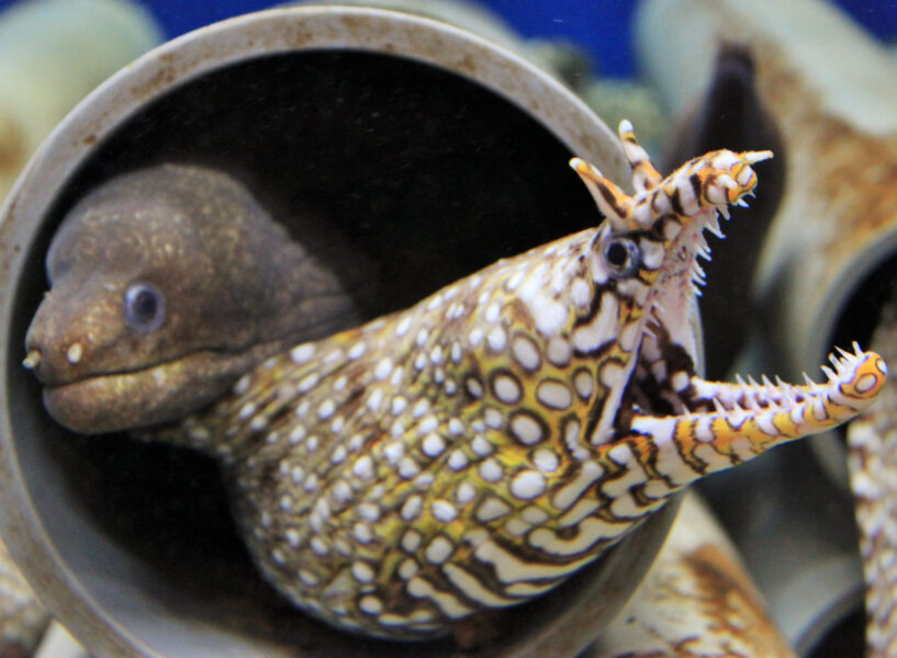 ウツボは海のギャングと呼ばれ、鋭い歯と睨むような鋭い目が特徴的。見るからに危険な匂いをプンプンさせています。