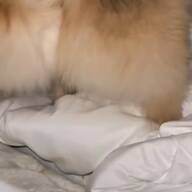 おとちゃんの挑戦は1回だけでは終わらなかったのだそう。再挑戦するおとちゃんに対し、メルちゃんも真剣な表情で迎え撃ちます。そんなメルちゃんの頭におとちゃんが前足を「ぽん」と置いていたのだそう。さすが大型新人です。そんなバトルの様子をラテちゃんがのんびり見ていたのだそう。