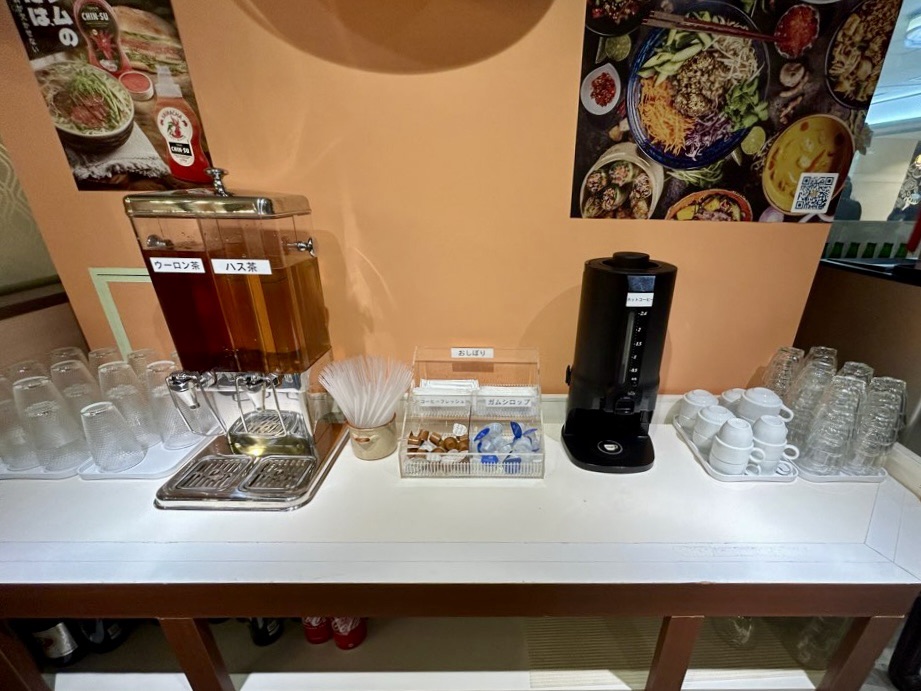セルフサービスのコーヒーとお茶が準備されていて、おかわり自由です。