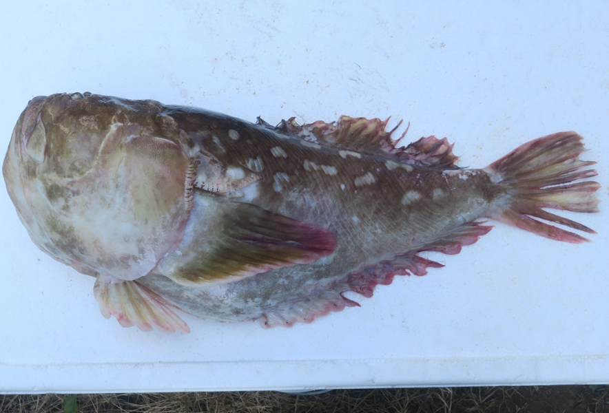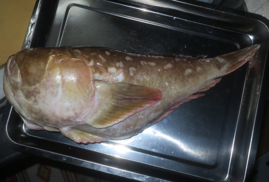 大きなメスの個体(卵巣があったため)でその大きさは全長46.8センチ、標準体長35.6センチ、重さ3キロでした。もちろん我が家にやってきたミシマオコゼ科の中では規格外のサイズです。