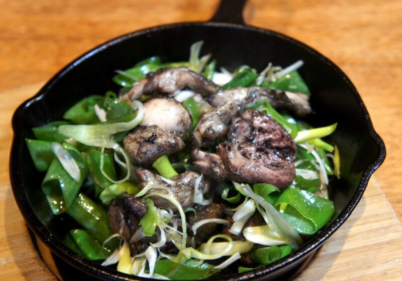 ネギの下から発掘し、ぷりぷりお肉がこんにちは。Mixはもも、はつ、セセリの3種類です。焼き方が完璧で、火がしっかり通っているのにとてもやわらかい! ネギポン酢との組み合わせもばっちりです。