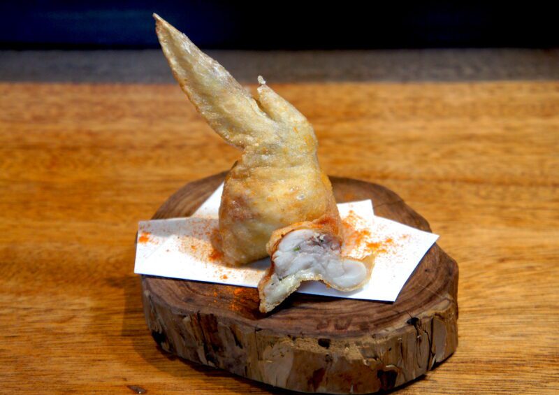 次は「青二才の手羽唐」(350円)です。手羽の中に自家製サルシッチャを詰めているという他にない手羽唐で、噛むと肉汁が溢れでます。またハーブで使っている大葉やセリの風味もいい塩梅です。