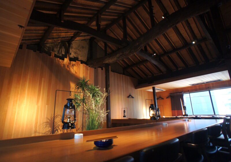 築90年上の古民家を山小屋風に改装された「ロッジ」の内装をほぼ生かしたまま、1階には新たに個室が作られました。