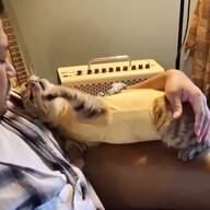 飼い主さんにそっと持ち上げられた猫→『胴体』を見てみると…驚きの光景に6万いいね「もしかしてお餅?」「おうどんみたいw」と話題