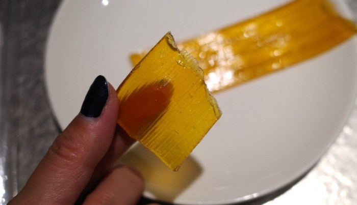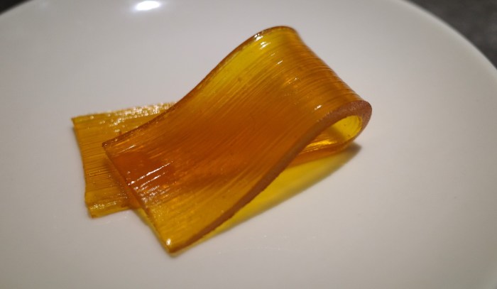手で持つとやはりペタペタしていて、思ったよりも柔らかい。手で簡単に千切れてしまった。感触は、どこかゼリーのようだ。