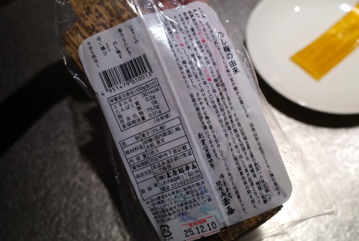 ちょうどそばにいた、山形県出身の友人に聞いたところ「美味しいよ」とのお墨付きもいただいた。名前を聞いただけでは、酸っぱいのかそれとも甘いのか、はたまたしょっぱいのか不明だ。いざ『のし梅』初体験である。