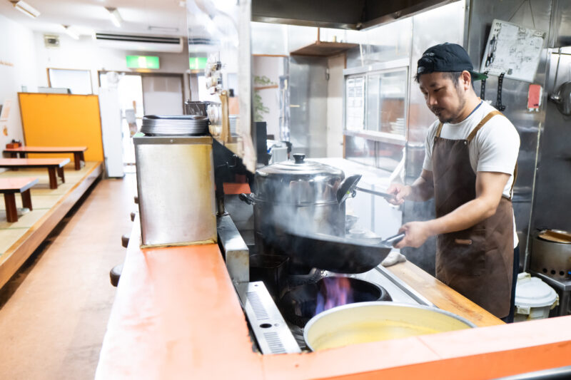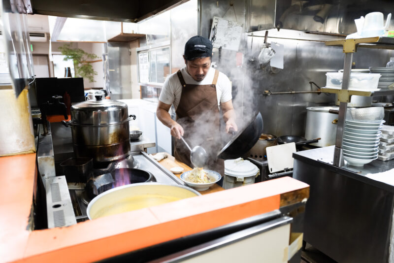 ちゃんぽんを作る上で大切にしているのは何か、最後に聞いてみた。火加減、調理のテンポ、手順、素材の選び方、いろいろな答えを想定していたが、まるで違った答えが返ってきた。少し時間をおいてから、秀一さんは「味見ですかね」とつぶやいた。そして、「ちゃんぽんは注文ごとに肉や魚介、野菜を炒め、スープと麺と合わせて煮詰めて仕上げていきます。一杯ずつ料理をしている感覚なんです。一つの鍋で一杯作るのと、三杯作るのとでは大違い。単純に掛け算ではないんですよ。だから、どんなに慣れてきても、絶対に味見をします」と続けた。自分を信じているからこそ、自分を信じすぎない。感覚を研ぎ澄まし、一杯のちゃんぽんに集中する。その積み重ねの先に、さらに多くの笑顔が待っていると信じて。