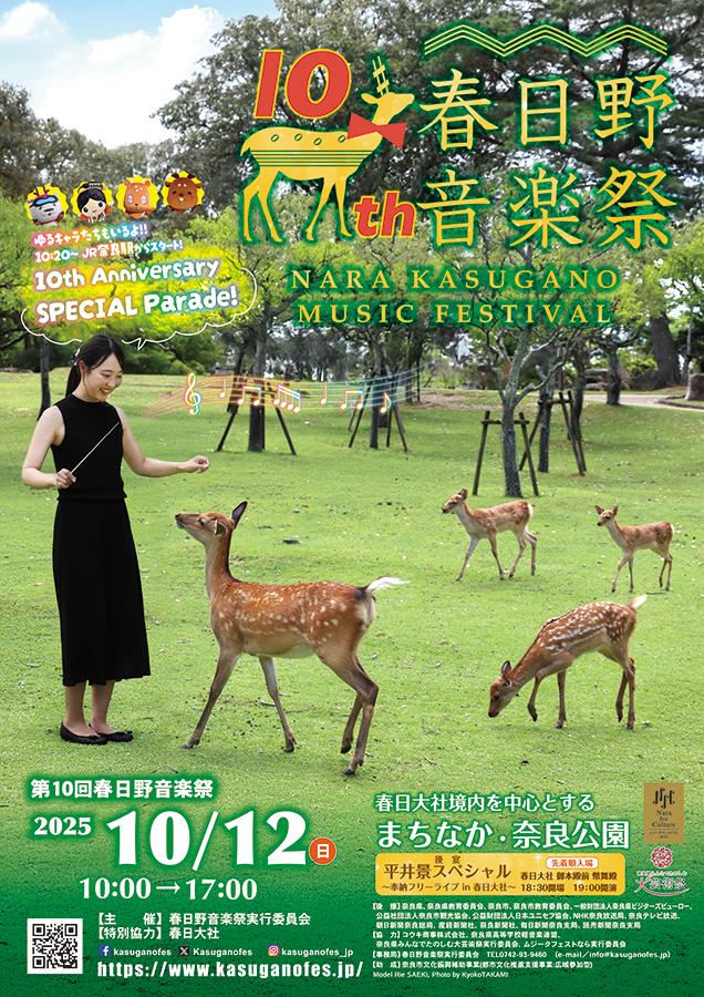 2016年に第1回を開催してから今年で10年目。その記念として、JR奈良駅から春日大社境内飛火野まで奈良学園大学マーチングバンド部によるスペシャルパレードや、後宴では奈良市出身のドラマーで作曲家の平井景さんらによるフリーライブなど特別な企画が行われます。