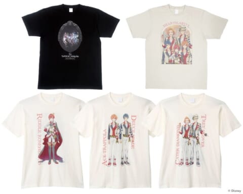 全5種(寮長/ハーツラビュル/リドル/エース&デュース/ケイト&トレイ)。M/Lの2サイズ展開。各キャラクターがデザインされたTシャツは、日常使いにも適しています。