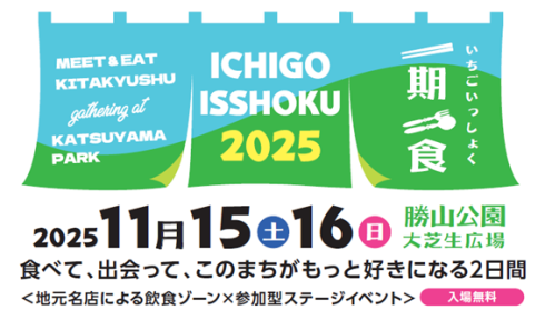 北九州の食の魅力を全国へ発信すべく、地元企業と市民の想いから生まれた新イベント「一期一食(いちごいっしょく)2025」が、今年11月15日(土)・16日(日)、小倉北区の勝山公園・大芝生広場で初開催されます!
