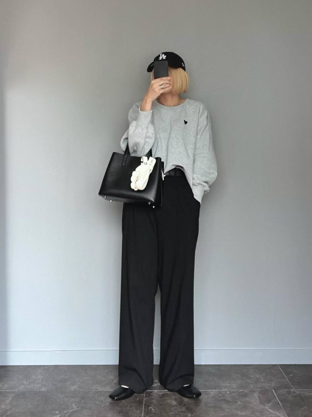 11月のお出かけだったら、トップスにスウェットを合わせた大人カジュアルな濃色コーデがおすすめ♡