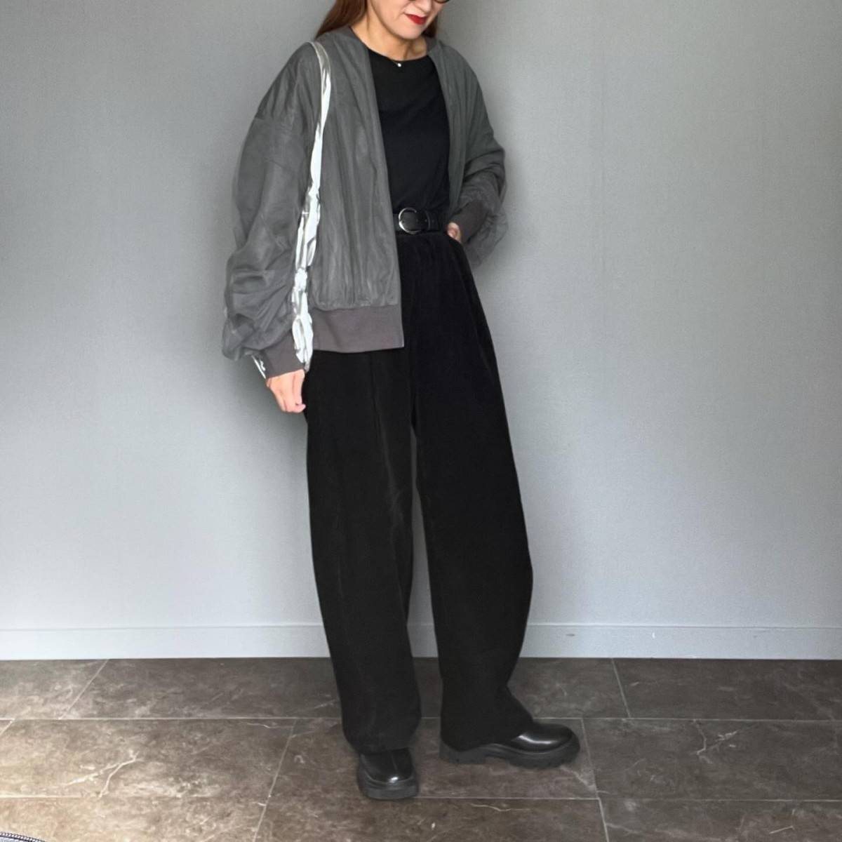 グレーのブルゾンを羽織った11月らしい濃色コーデは、大人っぽさはそのままに、明るさをプラスすることができますよ♡