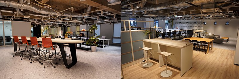 オフィスバスターズは11月14日、旧営業拠点を移転し、新たに本社ビル1階に新たな「大手町・神田サテライト」を10月1日付でリニューアルオープンした。オフィスづくりの最新トレンドであるABW(Activity Based Working)をリユース家具で実践する、「ライブオフィス」としての機能も備えている。