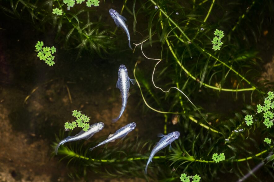 メダカにもたくさん種類がありますが、その中でも私が選んだのは青白いボディと背中に特殊な光沢をもつ「幹之メダカ」でした。