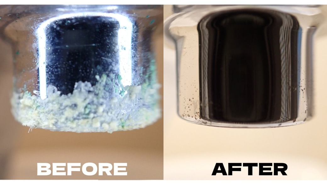 問題の白い塊が付着した蛇口も今回のやり方を行えば、ここまで落とすことが可能です。しかもやり方は簡単で、洗浄力の強い特別な洗剤は一切いりません