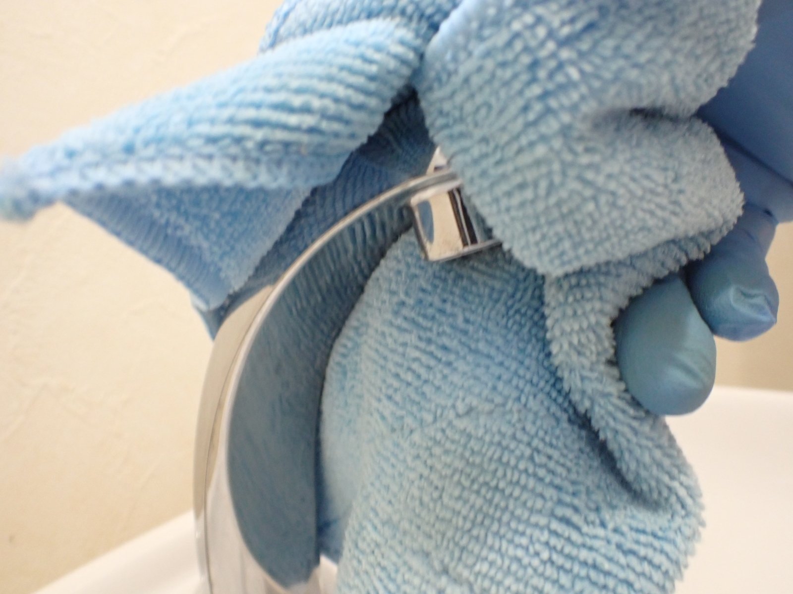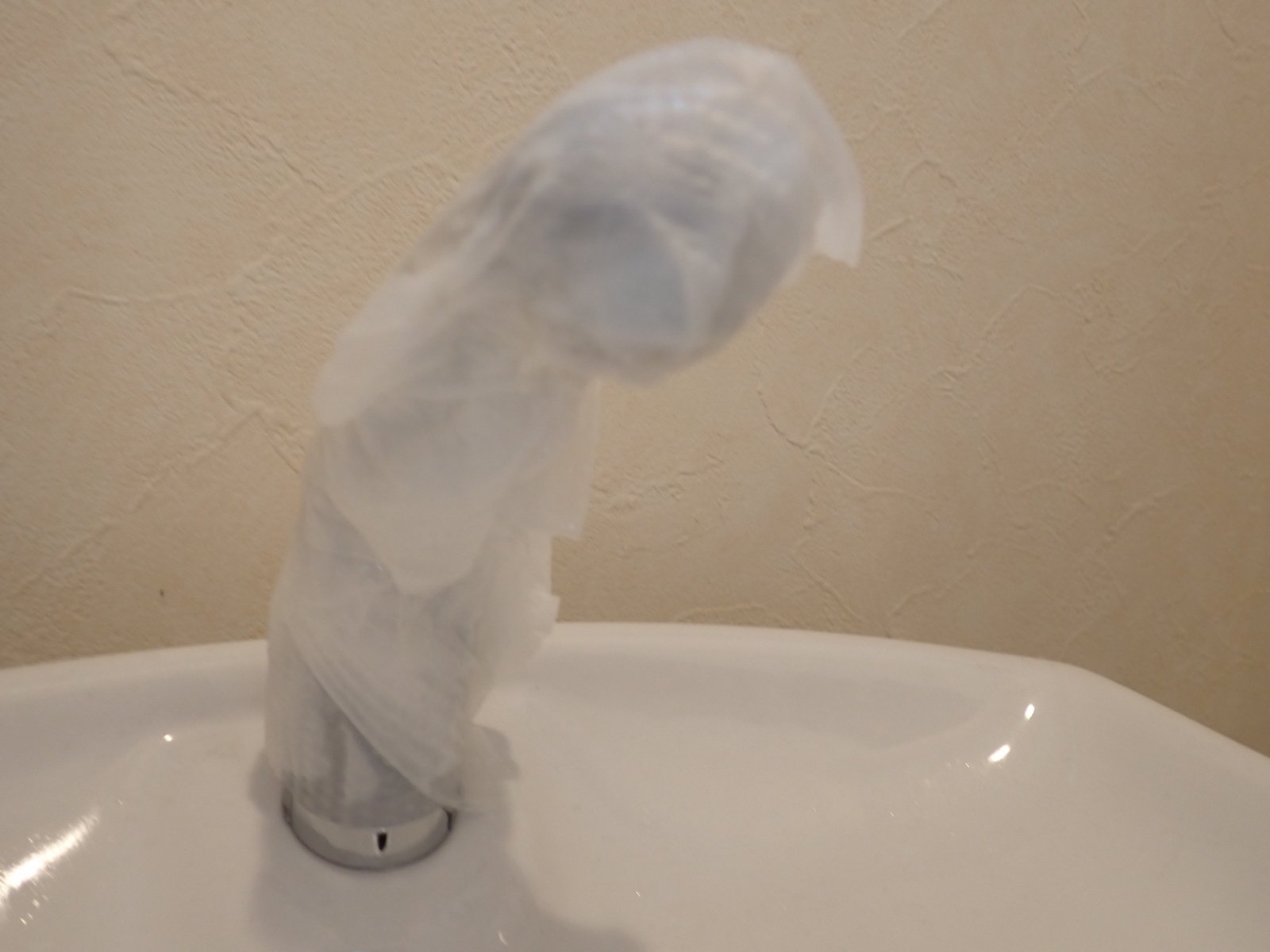 そんな時は、プラスチックのヘラにキッチンペーパーまたはショップタオルを巻いて、優しく削り落としていくのがおすすめです。力任せに行うと蛇口を傷つけてしまうのであくまでも優しく。