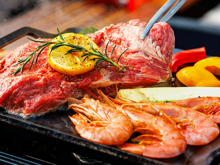 心斎橋駅から徒歩5分、大阪ミナミの街中を見渡すビルの最上階にある【難波ビアガーデン BBQテラス なんば心斎橋店】。開放感抜群のルーフトップテラスで、本格BBQが楽しめます。(※営業期間はお店HPにてご確認ください)仕事やショッピング帰りに、手ぶらで訪れることができるのも大きな魅力。ボリューム満点の牛肉だけでなく、豪華伊勢海老や鮪のバターステーキといった贅沢海鮮BBQにも心躍ります。