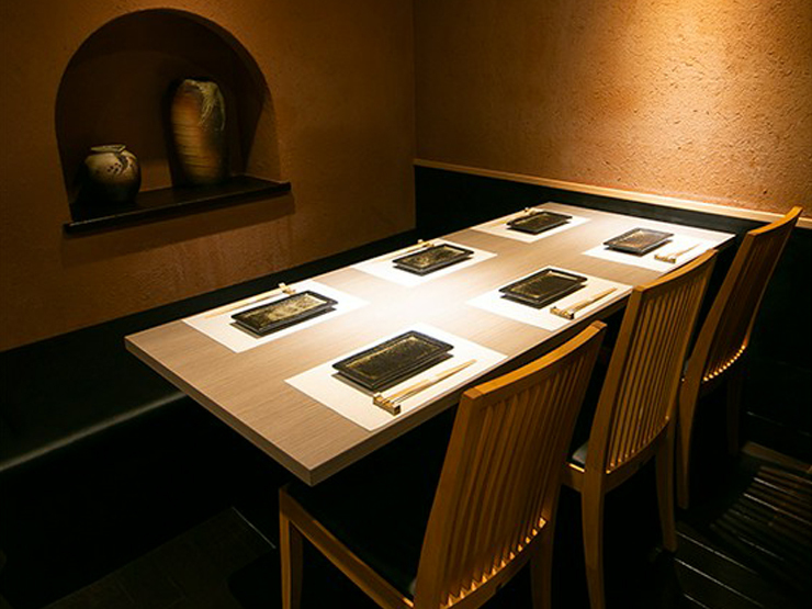 駅近とは思えないほど、ほっと落ち着けるアットホームな店内。広々とした明るい空間に、テーブル席やカウンター席が用意されています。プライベートな時間を大切にしたいなら、上品な設えのテーブル個室がオススメ。4名・6名用の2部屋があり、つなげて最大10名までの利用が可能です。和食に合わせた日本酒も厳選の品揃え、大人の付き合いにふさわしい一軒です。