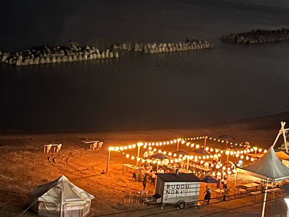 またネーミングキャンペーン期間中、波津海岸では『秋の夜長のほろよいビーチバル』も開催中(17:00~21:00)。岡垣町にある醸造所のクラフトビール、日本酒、ワインなどのお酒や、ジュース、おつまみなどが楽しめますよ。