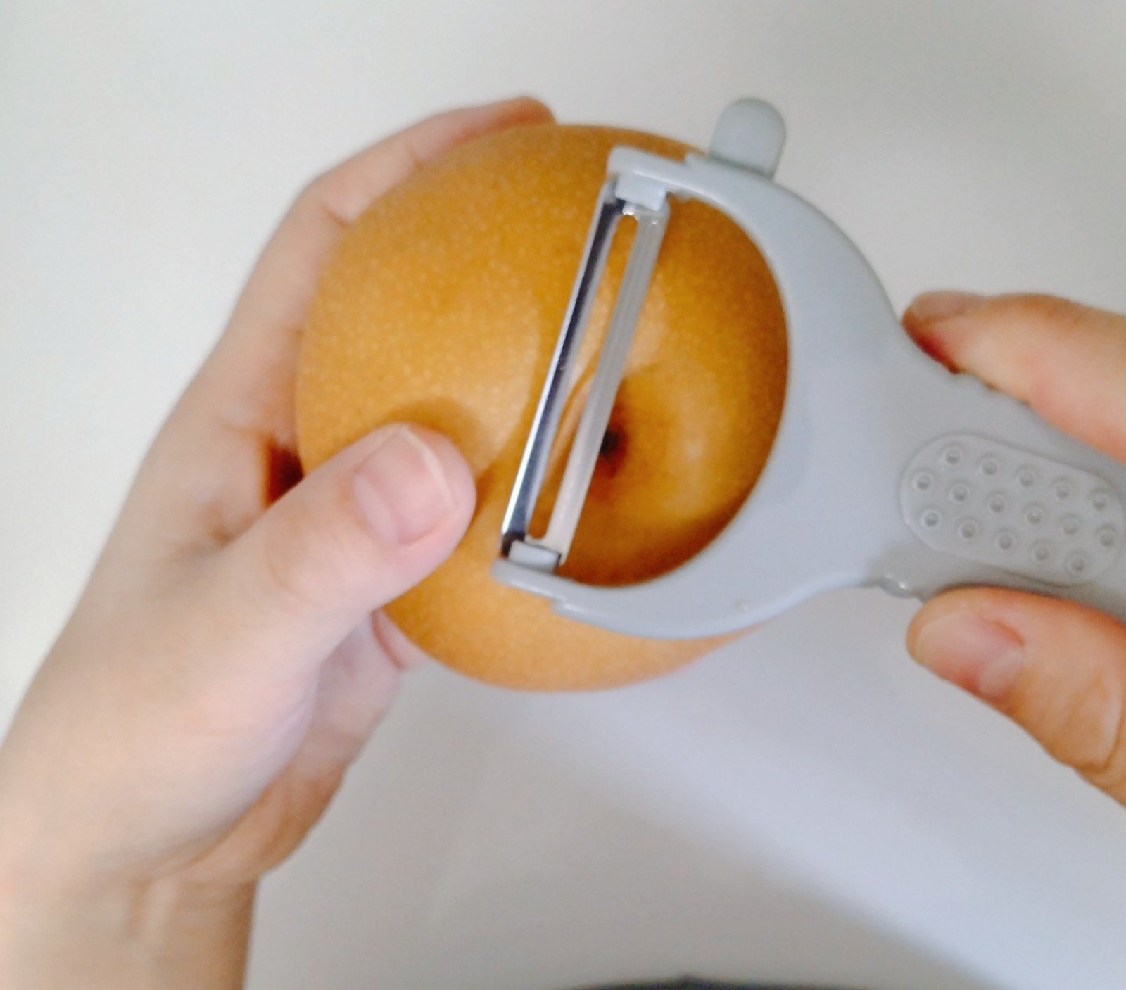 甘くておいしい梨を剥くのに、普段は包丁やフルーツナイフを使う方も多いのでは? でも、果肉を厚く削ってしまい、無駄になることも……。