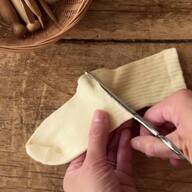 【2】裾全体に幅2cm、長さ10cmの切れ込みをハサミで入れる