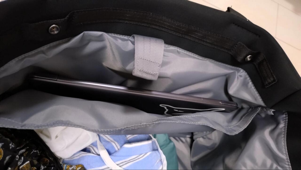 【adidas(アディダス) マストハブ シーズナル トートバッグ】内側にはノートPC対応の大きなスリーブポケット、反対側にはメッシュのファスナーポケットが付いています