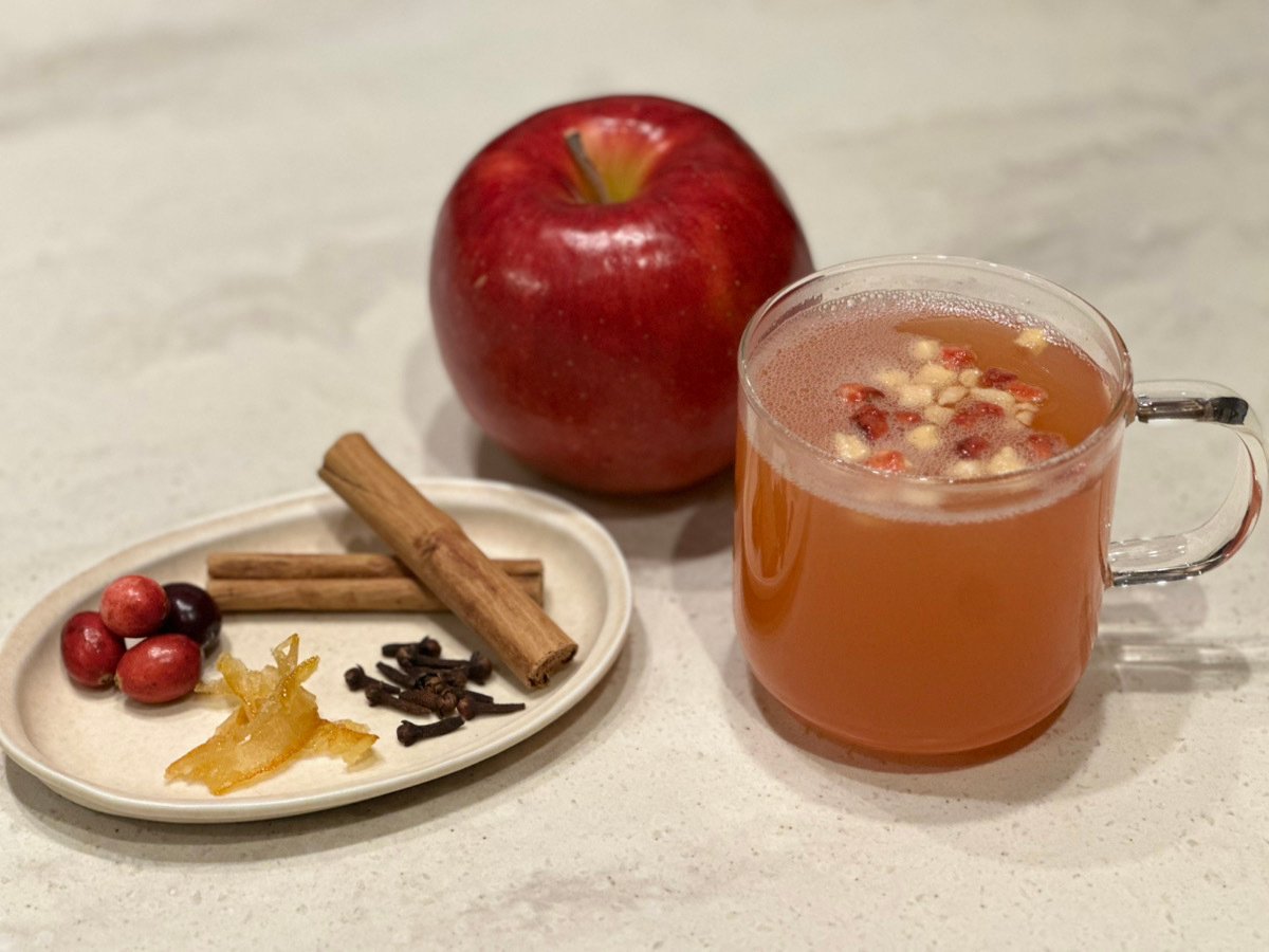 スチームで温めたアップルジュースに、アップルサイダー用のシロップを混ぜた1杯。シロップの中には、シナモン、クローブ、オレンジ、クランベリー風味がブレンドされていて、甘いアップルの香りの中にクランベリーを思わせる酸味が隠れていて、間違いなくはまってしまいます。