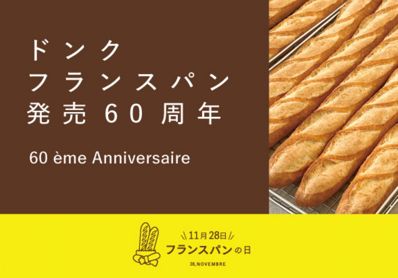 本格的なフランスパンの販売開始から60周年を迎えた、神戸生まれの老舗ベーカリー「ドンク」。これを記念し、「フランスパン発売60周年キャンペーン」が開催! 2025年11月28日(金)の“フランスパンの日”に合わせ、さまざまなイベントが行われます。