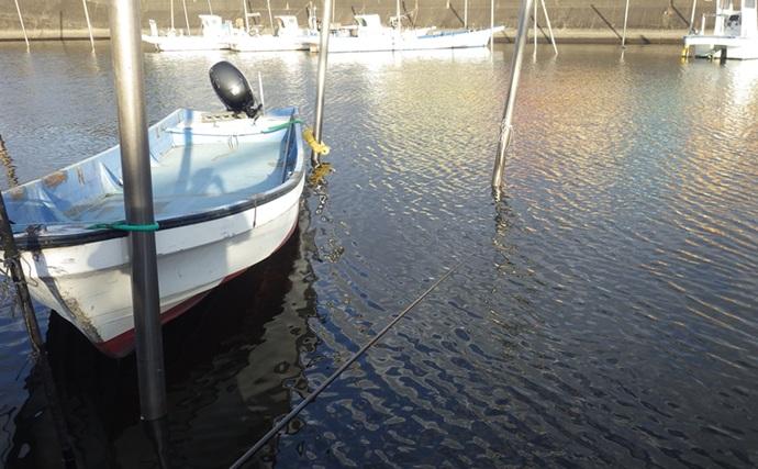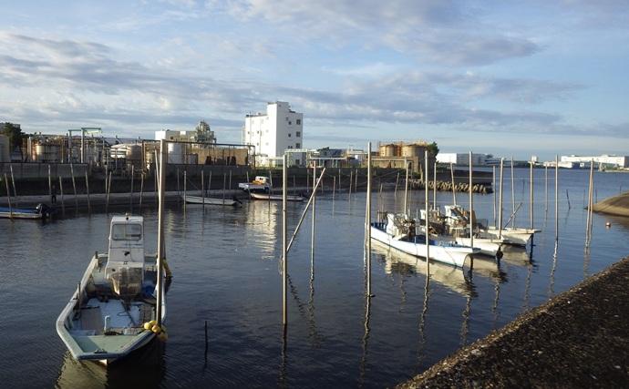 船溜まり(元市川港)を覗いてみると、平日にもかかわらず3名の釣り人発見!期待が持てます。早速空いている隙間に入れさせていただき準備スタート。