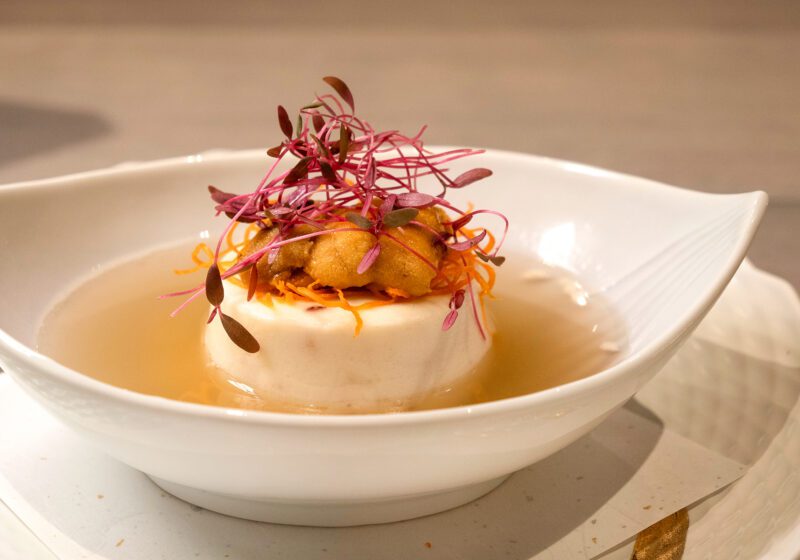 左:「新鮮野菜 Tout La Joie風」(2,500円・左)/右:天草の地ダコ、生ウニを贅沢に使ったスペシャリテ「活きタコのムース 和の香り」(3,500円)