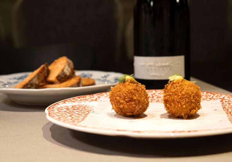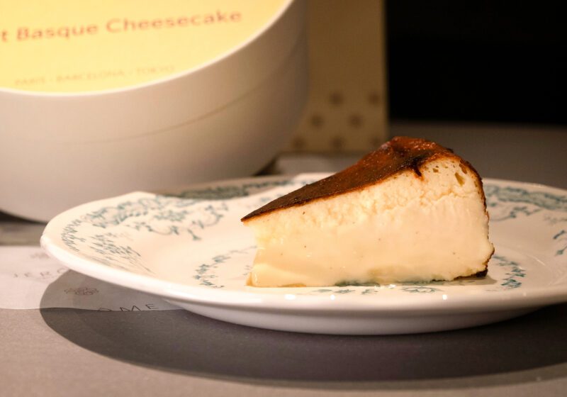 左:濃厚な「赤海老のコロッケ」(2P 900円)はカヴァと相性抜群/「ジェローム バスクチーズケーキ」(1,200円)はテイクアウトもOK