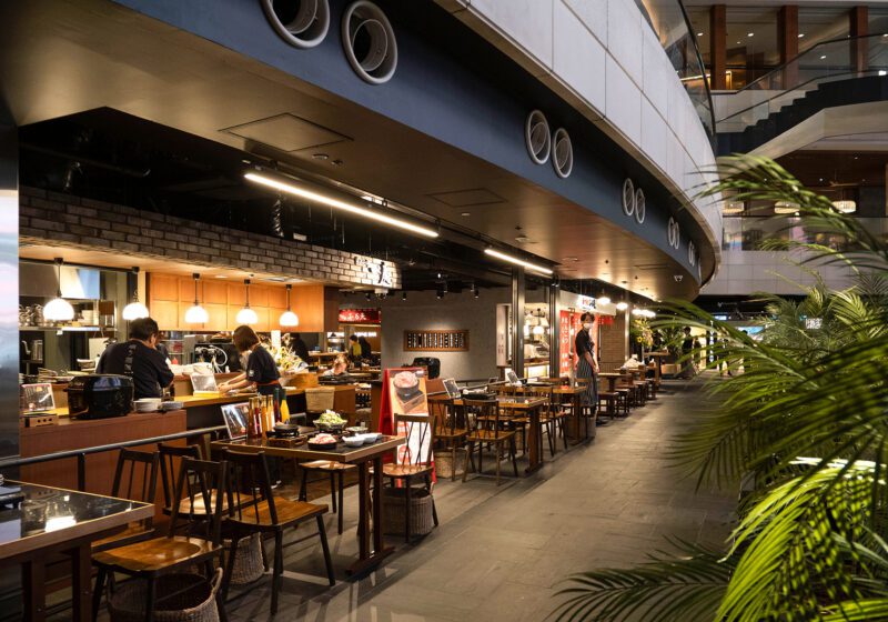 「KUOHKA(くおうか)」という名称は「食う」と「謳歌」を組み合わせた造語で、コンセプトは「美味しいものが気軽に楽しめる美食街」。オープンとセミクローズが重複した食空間は、さながら小さな“まち”のよう。店舗ごとに趣が異なり、どこもオシャレでワクワクします。