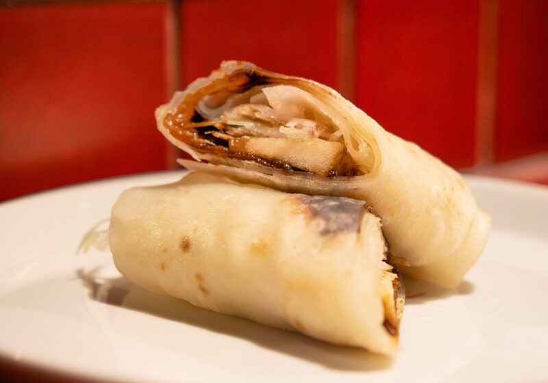 加えて、お酒が進む小皿料理(550円〜)や、店で漬け込んだ「薬酒」のカクテル=「ヤクテル」などもあり、ちょい飲みにも最適。「キムラの海老細春巻き〜レモンマヨ〜」(4本1,100円・写真左上)や「必食!NOGIの北京ダック」(1本1,000円・写真左下)など、どれも“技あり!”なおいしさでした。
