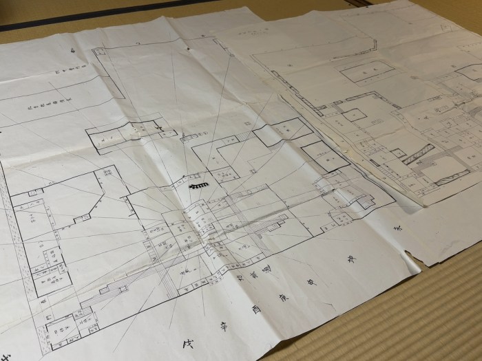 田野さんは貴重な資料も所有する。広げられた図面は、新選組がやってくる前と後とを比較できる家相図。新選組は敵襲を警戒し、前川邸の守りを固めた。おもに訓練が行われたのは近所の壬生寺だが、屋敷の敷地内でも訓練ができるほど広い土地があったという。