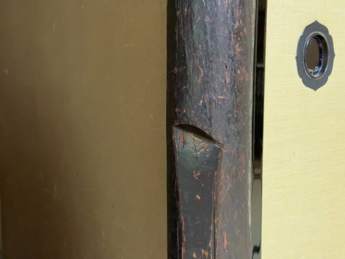 隣室の床柱には刀傷が残っている。観光名所や博物館のような、どこか温度感のないガラス越しの展示とはまったく異なる。人が実際に暮らす住居であるという点で、旧前川邸は特別な存在だ。屋敷全体に血が通っている────そんな感想が湧き上がる。