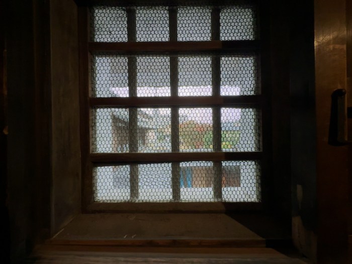蔵の窓からは分宿先の八木邸が見える。家並は変わっただろうが、隊士たちも同じ窓から外を眺めていたかと思うと胸に込み上げるものがある。