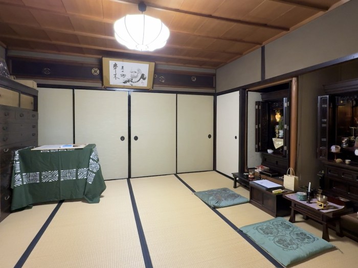 今回、特別に田野さんが暮らす母屋も見せていただいた。野口健司が切腹したという小部屋を見やり、三間続きの和室へ。山南敬助が切腹したと伝わる部屋は、現在仏間として使われている。