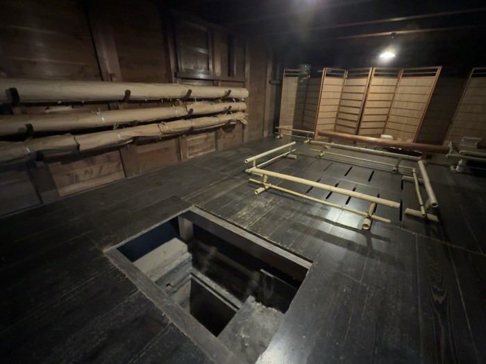 床下には金庫として使われた地下空間があるが、とても入りきらず、床上にも千両箱が並んでいたと推察されるそう。世が世なら財閥だというくらい前川家は有力な家だった。