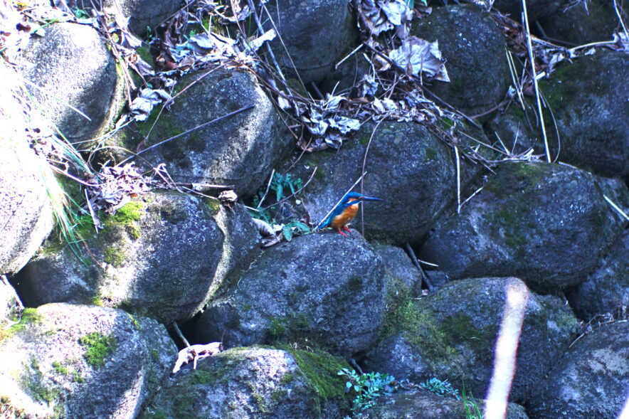 そんな速さで飛んでいても、青い模様が非常に目立ち、その美しさに驚きます。皆さんも是非鳴き声を頼りにカワセミを探してみてください。