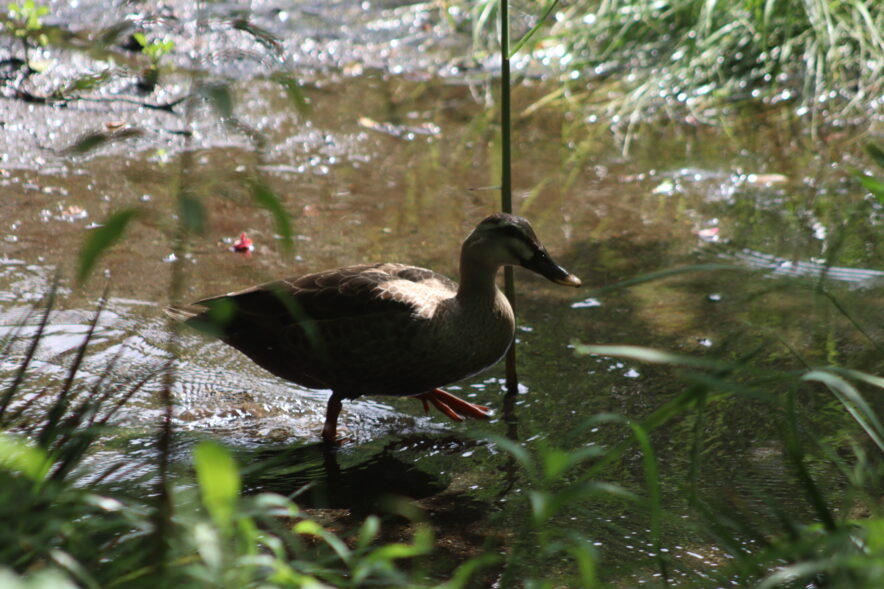 おそらく日本で一番よく見かけるカモがカルガモです。親子で列を成して移動する姿をテレビ等で見かけた方も多いと思います。