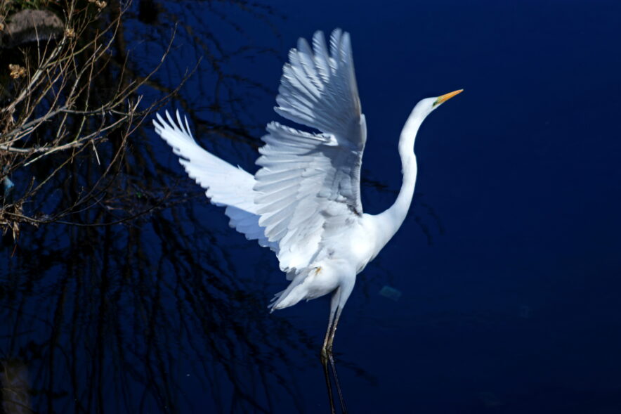 「シラサギ」と呼ばれる鳥の中で最も大きい鳥がダイサギ(ダイサギ・チュウダイサギ)です。全身白色で、くちばしは繁殖期では黒色、非繁殖期は黄色をしています。