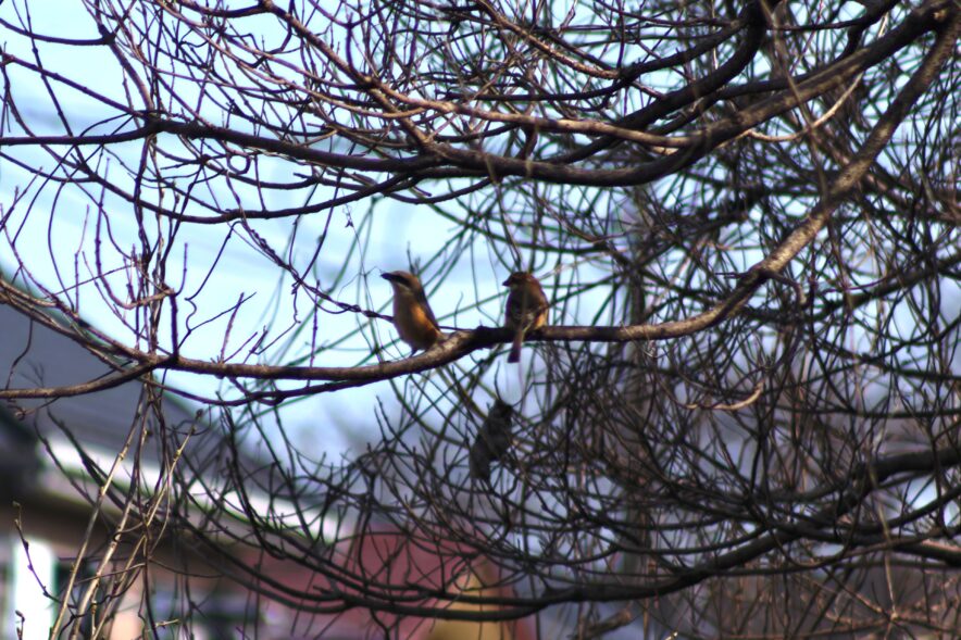 先ほどのカワセミの写真と同じく、彼らを驚かせてしまうと良くないため、この写真もかなり遠距離から撮影しました。そのため上手くピントが合っていません。しかし、それよりもはじめてモズに会えたという嬉しさの方が大きかったです。