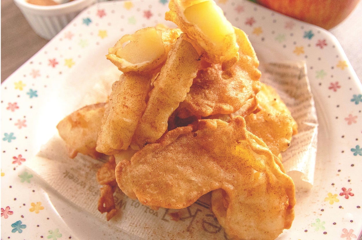 「りんごのカリッとフリッター」は、りんごの自然な甘みをそのまま生かしたシンプルなおやつです。フリッターとは、牛乳や粉で作った衣をまとわせて揚げる料理のことで、外はカリッと、中はふんわり仕上がります。衣は牛乳と粉を混ぜるだけで手軽に作れ、カリッとした食感の中に果肉のジューシーさが残ります。ぜひ、作ってみてくださいね♪