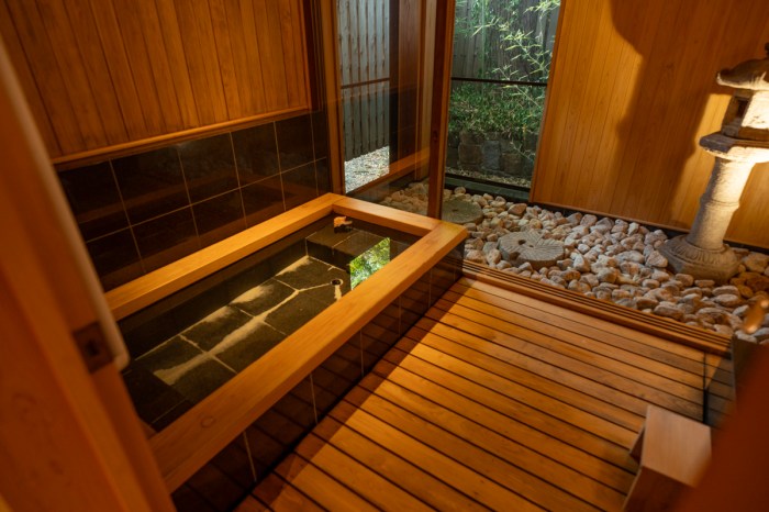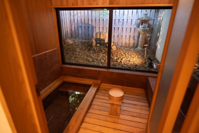 ツイン + 和室で、風呂はこんな感じの半露天風呂。