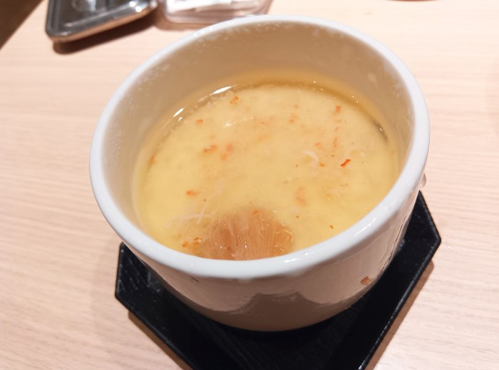 ウマイという気持ちが体の先を駆け抜けていく。そして、そのウマさの速度に引っ張られるように食べてしまう。気づけば、ラストオーダーになっていた。おや? 80分あったはずだが。付きだしの茶碗蒸しがまだ手付かずの状態であることが私の相対時間を現わすかのようだ。一瞬だった。