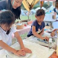 新聞紙のバッグにヒマワリの写真やサクランボのイラストをあしらった森志津さん(80)は「知らない人とも自然に会話ができて楽しかった。思っていた以上の出来に満足。次は友人も誘って参加したい」と話した。