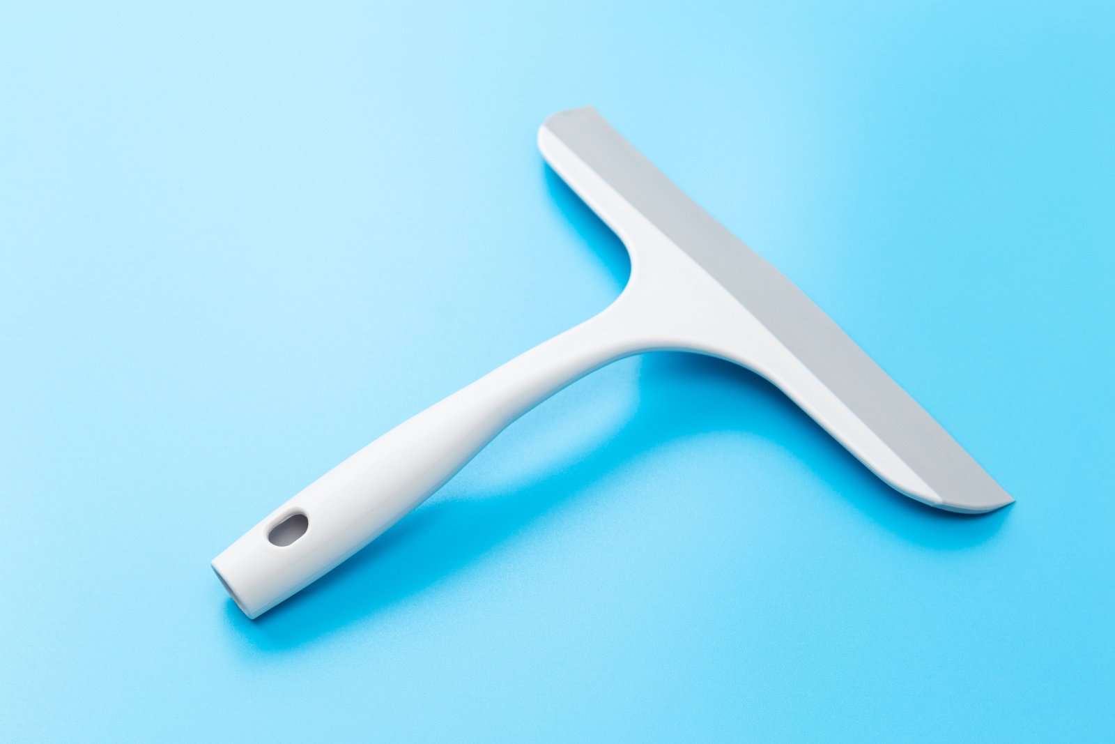 スクイージーは、地味な見た目以上に役立つ、お風呂掃除に欠かせないアイテムのひとつ。なでるだけで、ガラスや壁の水滴をラクに取り除くことができます。