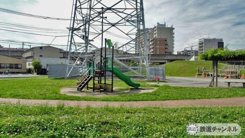 子供向けの遊具もあります。足下にはクローバーが広がって白い花が咲いています。子供の頃は「シロツメクサ」と呼んでいましたね。