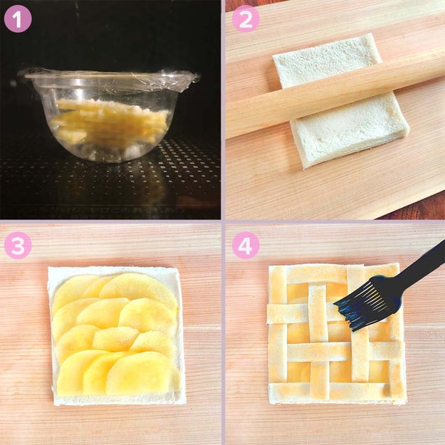 ④もう1枚の食パンを8等分に切り、③に網目上になるようにのせる。溶き卵を塗り、トースターで5分程焼いたら、完成!