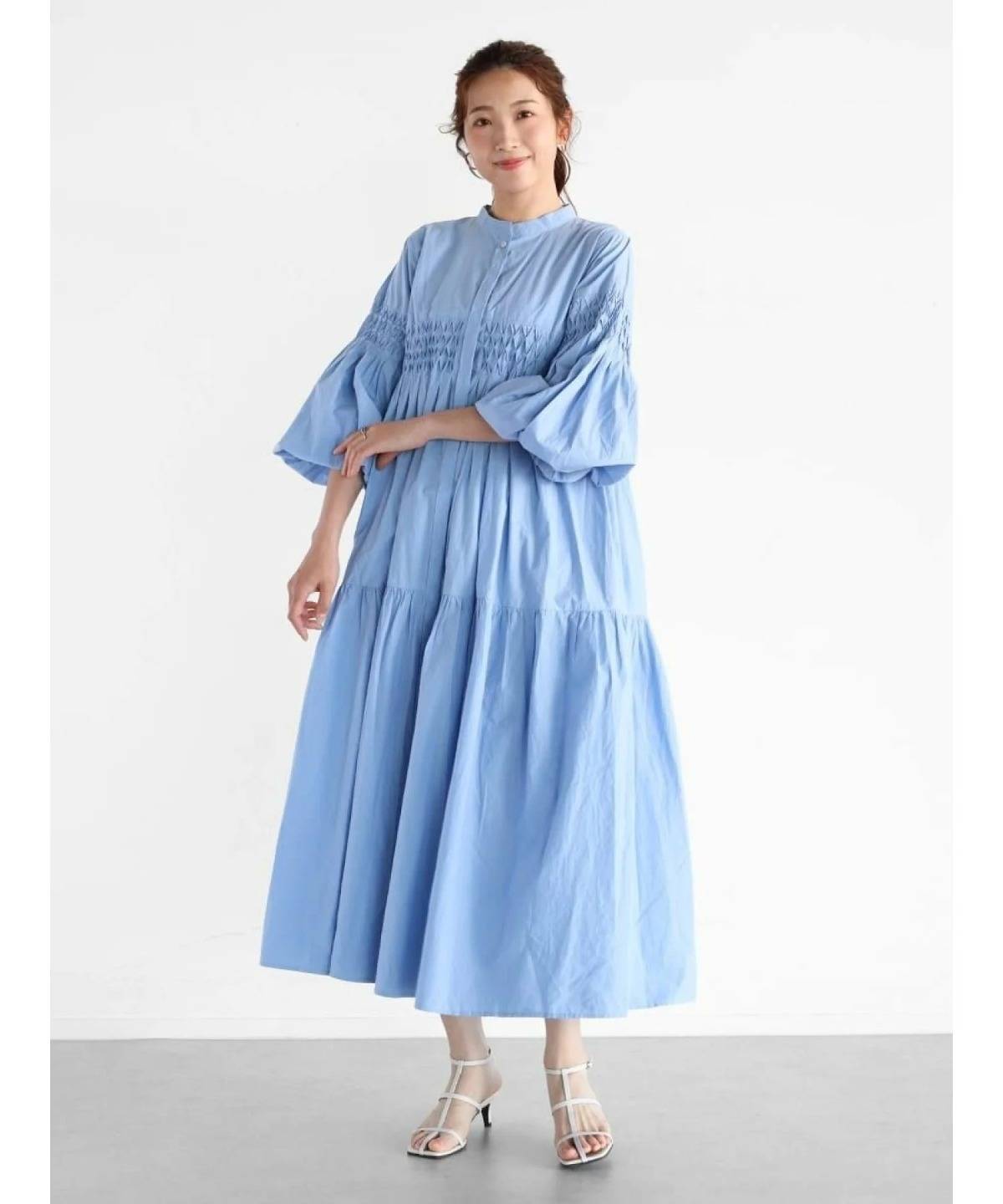 シンプルながらスモッキング刺繍が良いアクセントになっていて、おしゃれ見えします。